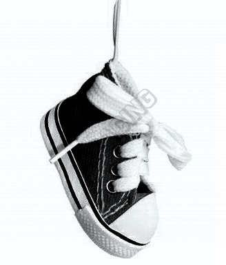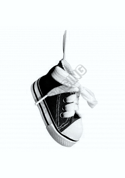 Osvěžovač vzduchu ve tvaru boty se šňůrkou k zavěšení.