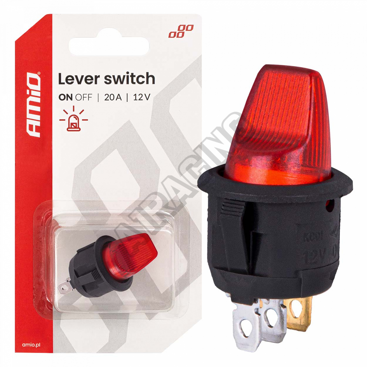 Páčkový spínač s červeným podsvícením 20A 12V AMIO-04438