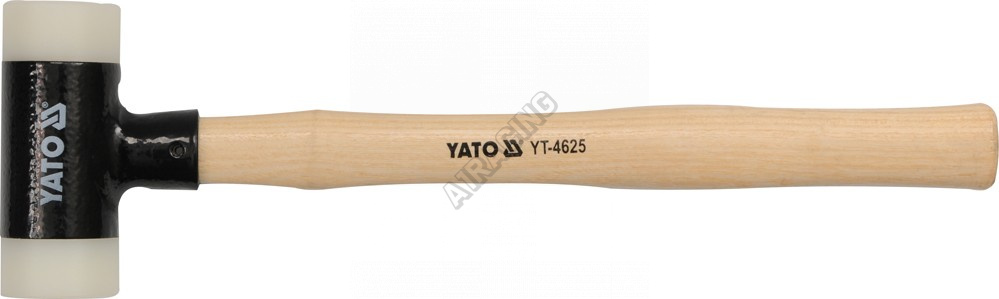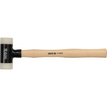 Šetrné kladivo s úderovými hlavami z gumy.Dvoudílné těleso z ocelové litiny, s úderovými hlavami a d