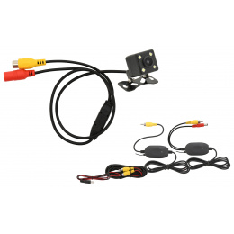 Balení obsahuje 1x kameru, bezdrátový vysílač a přijímač video signálu, kompletní kabeláž pro propojení s napájením i bezdrátovým vysílačem a přijímačem a pro případ potřeby i kabeláž pro přímé propojení bez bezdrátového přenosu.