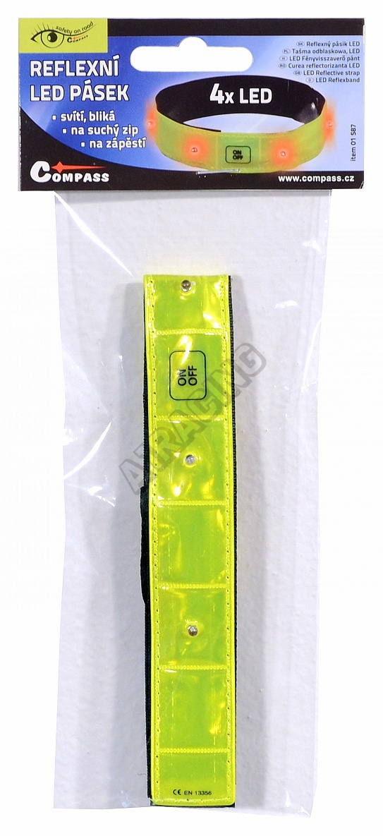 Pásek reflexní 4LED svítící Reflexní pásek se světlem k upnutí na ruku či na nohu. Zapínání pomocí