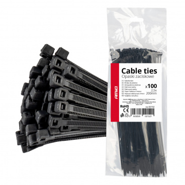 Pásky stahovací kabelové černé 2,5x200mm - 100 ks