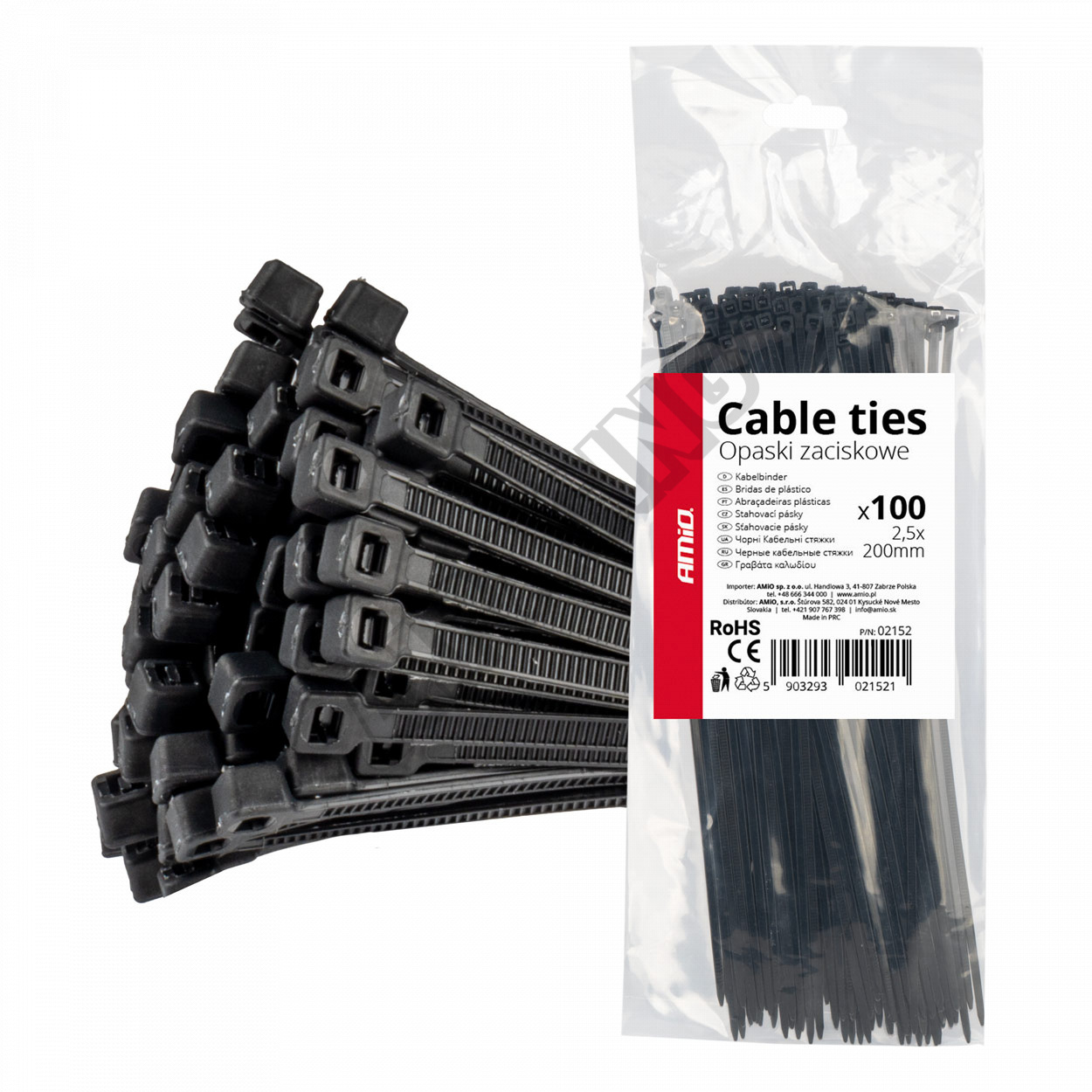 Představujeme vysoce kvalitní stahovací pásky AMiO v černé barvě o rozměrech 2.5 x 200 mm. To ideáln