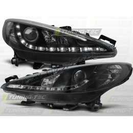 PEUGEOT 207 2006-09 PŘEDNÍ ČÍRÁ SVĚTLA DAYLIGHT LED BLACK