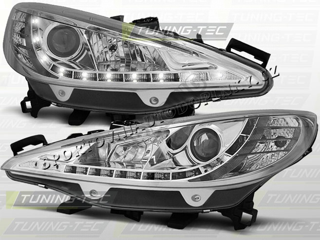 PEUGEOT 207 2006-09 PŘEDNÍ ČÍRÁ SVĚTLA DAYLIGHT LED CHROME