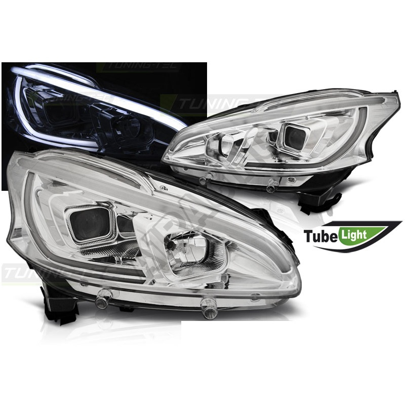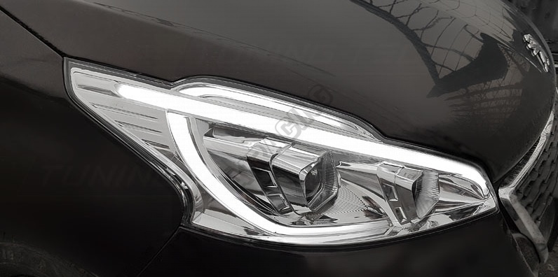 Peugeot 208 04.2012-06.2015 přední čirá světla Tube Light chrome (LPPE30)