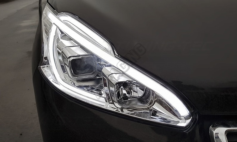 Peugeot 208 04.2012-06.2015 přední čirá světla Tube Light chrome