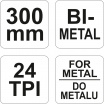 Dodáváno s bimetalovým pilovým listem 300 x 12 mm, 24 tpi.