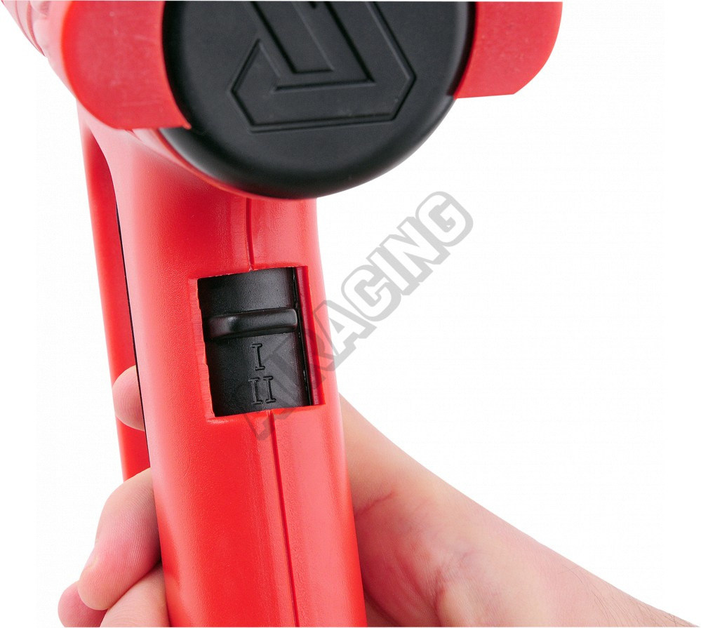 Klasická kvalitní horkovzdušná pistole Yato s dvěmi stupni výkonu. Tato pistole nemá v příslušenství žádné dodatečné usměrňovací trysky proudu horkého vzduchu.
