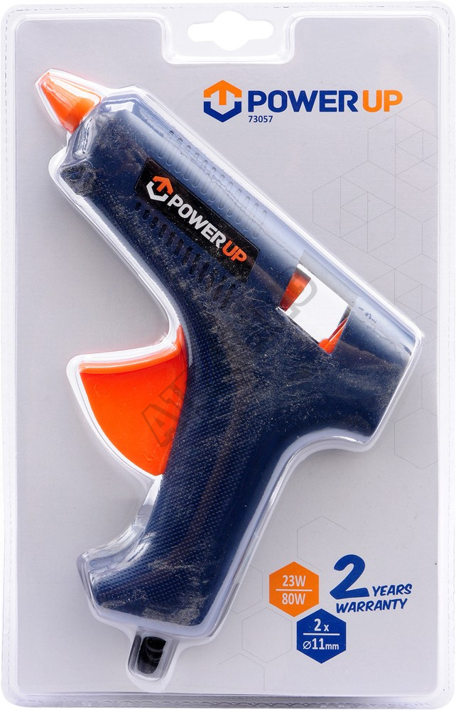 Tavná lepící pistole Power up 80 W 11 mm je výkonná pistole určená k lepení různých materiálů . Lepí plasty, dřevo, karton, sklo, keramiku, kámen, textil, korek, kovy a další materiály.