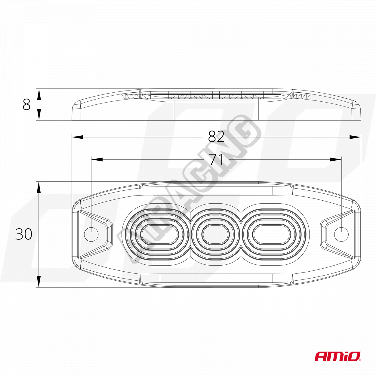 Plochá výstražná blikající lampa 3 LED R65 R10 12-24V