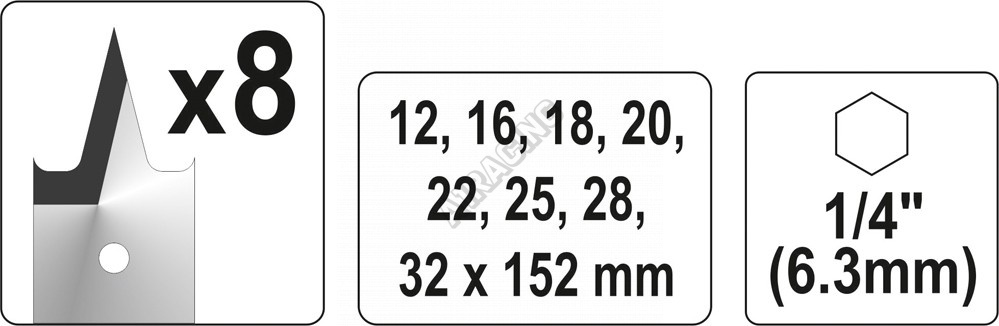 • Vrtáky do dřeva ploché sada 8 kusů Yato 12 - 32 mm