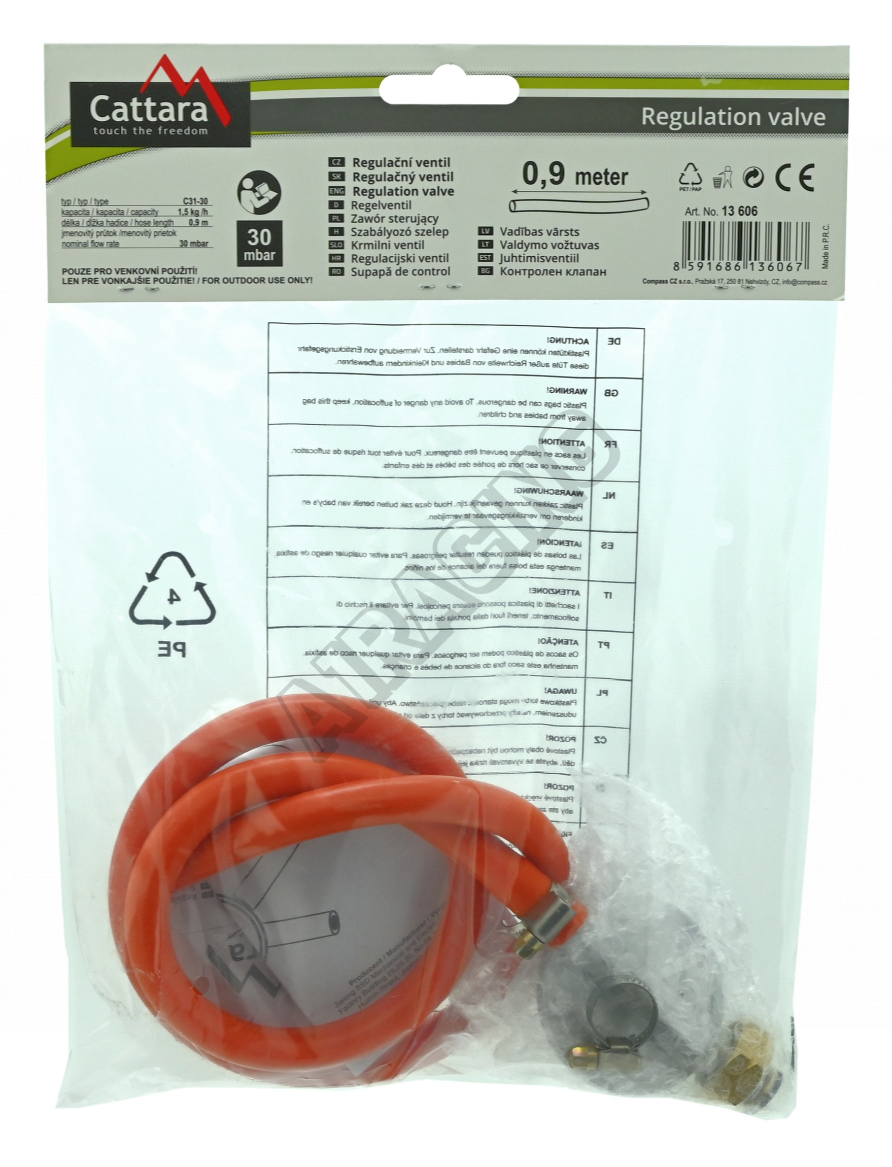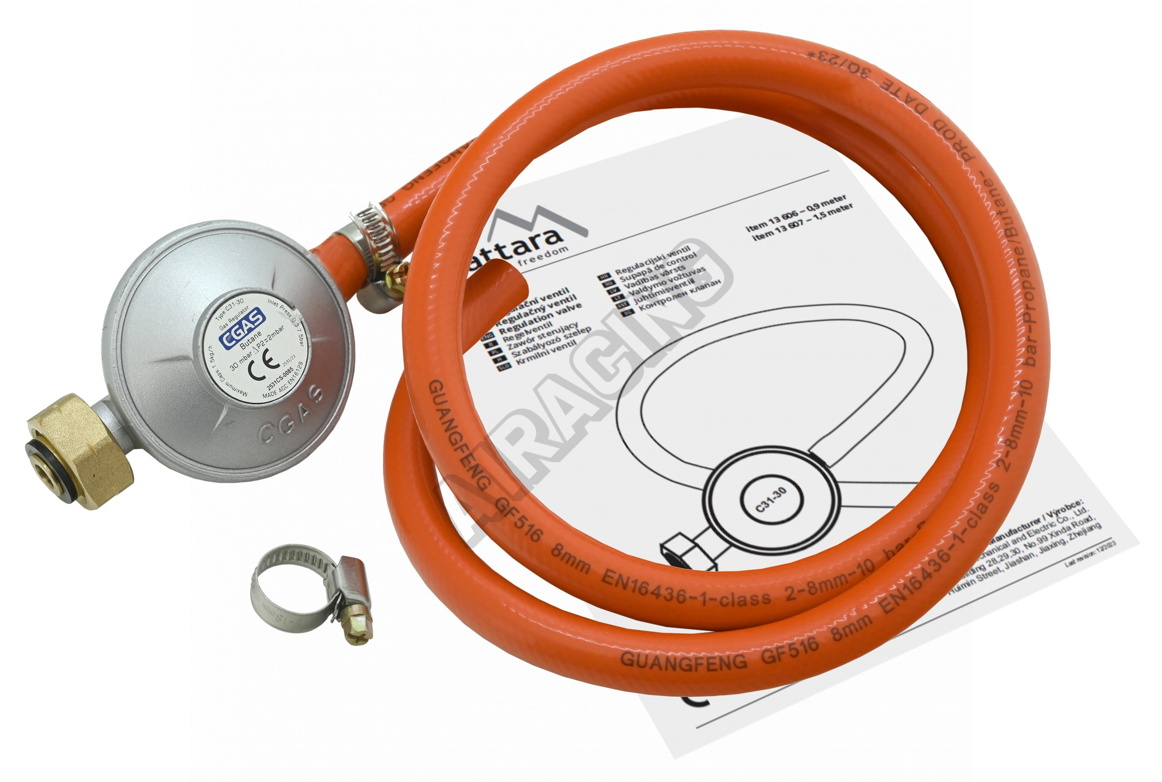 Plynový regulátor tlaku 30mbar EN16129 - sada 0,9m hadice12.69 EUR