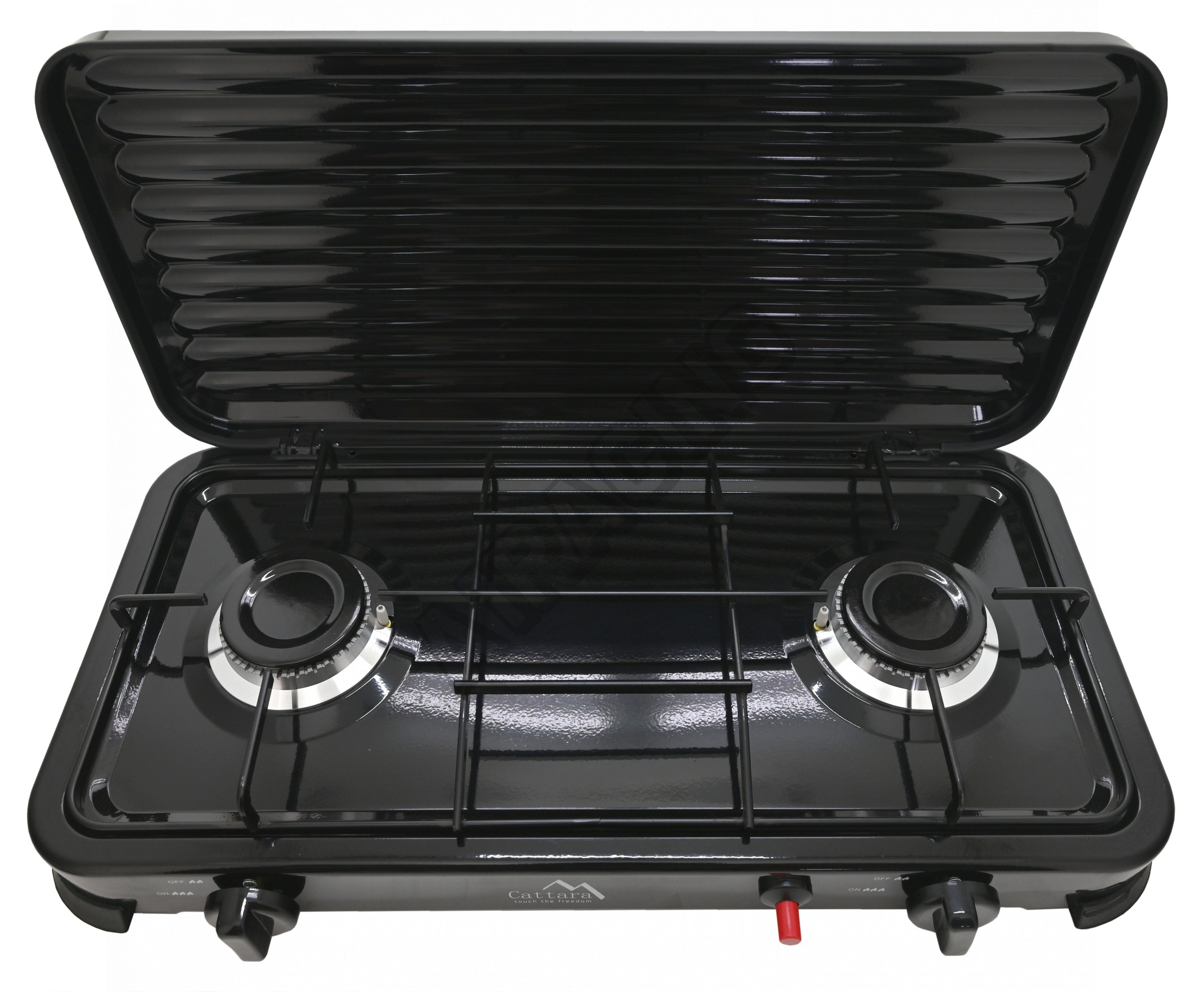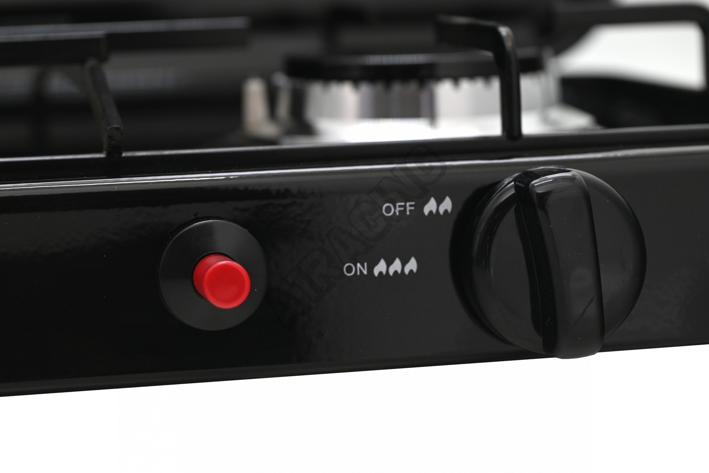 Snadné použití vařiče ve venkovním prostředí je zajištěno 2x hořáky s piezoelektrickým zapalováním a plynule regulovatelným průtokem plynu u každého hořáku zvlášť.