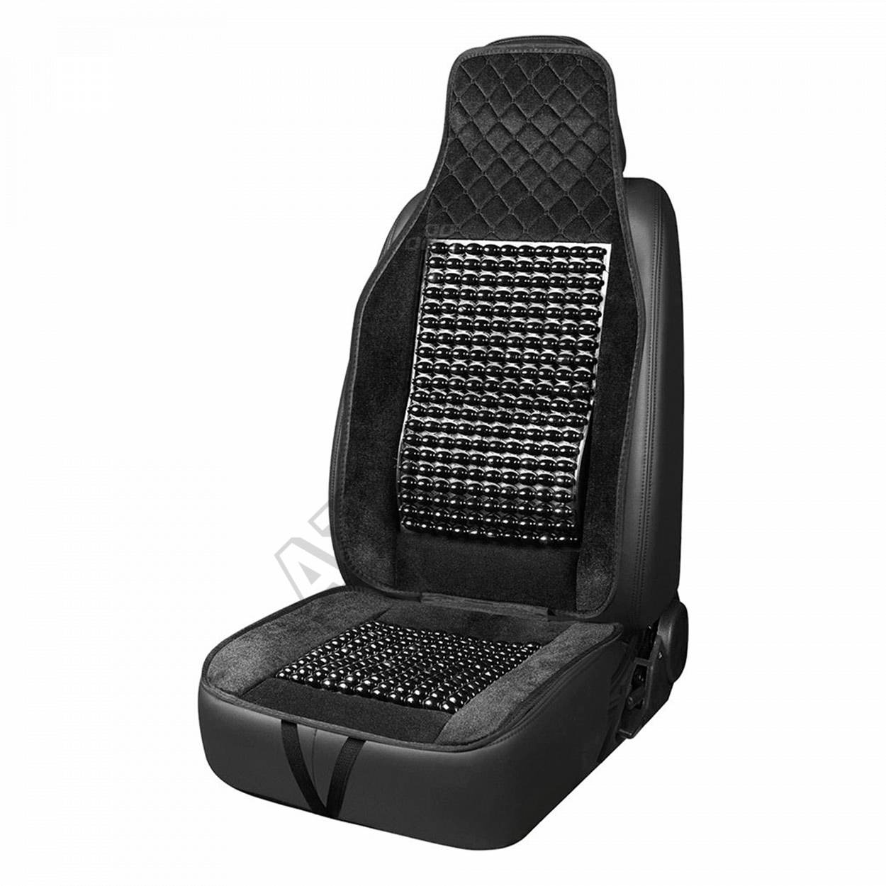 Použití korálků umožňuje lepší cirkulaci vzduchu mezi tělem a opěradlem sedadla, což omezuje pocení zad a zvyšuje pohodlí i během dlouhých cest. Podložka má univerzální rozměry (45x120 cm), díky čemuž pasuje do většiny autosedaček – jak na straně řidiče, tak i spolujezdce.