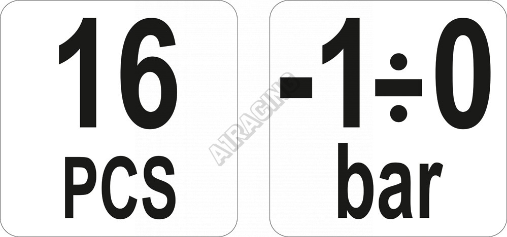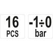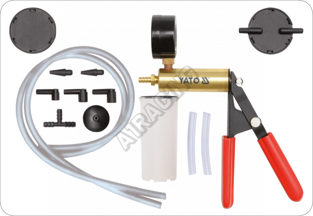 V sadě se nachází 16 ks dílů, a to ruční čerpadlo s manometrem, pracující s podtlakem až -1 bar, nádobka na kapaliny, hadičky a další propojovací prvky.