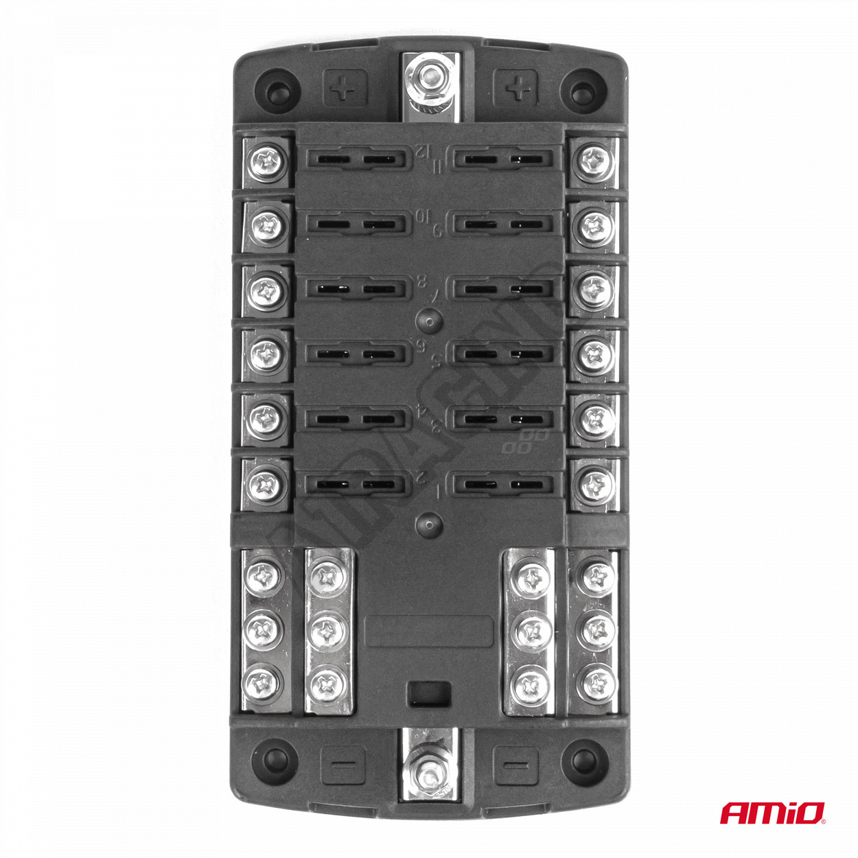 Skříňka s pojistkami s negativní lištou šroubové konektory 12 zásuvek AMIO-03834
