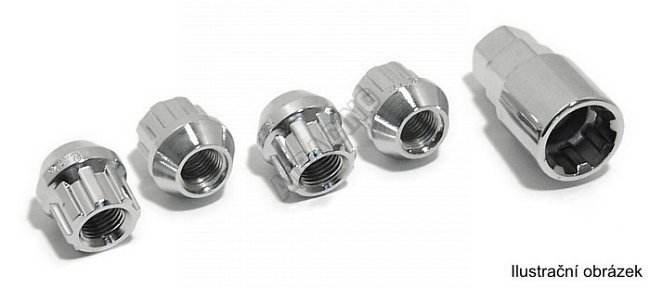 Pojistné matice kol ochraňují kola před demontáží běžným nářadím. Sada 4 kusy + unikátní klíč, montuje se vždy pouze jedna pojistná matice na jedno kolo. Použitelné pro slitinové i ocelové disky.