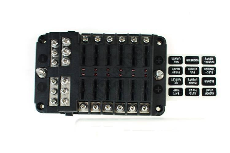 Praktická pojistná skříň na 12V s průhledným krytem.