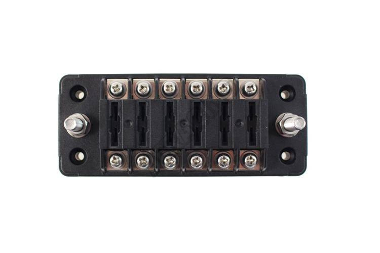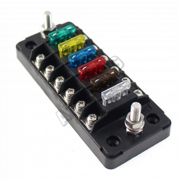 Pojistná skříň na 6 pojistek Praktická pojistná skříň na 12V s průhledným krytem. Počet držáků poj