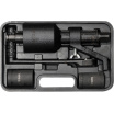 Sada je uložena v kufru, kde se nachází spolu s kovanými nástavci velikosti 32 a 33 mm, je tedy možné použít i pro sundavání kol nákladních automobilů.