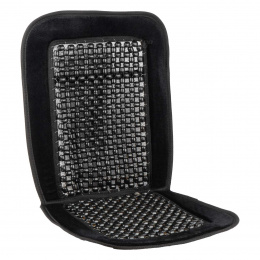 Potahy, podložky na autosedačky s korálky obšívané velurem. Má funkci masážních sedadel v autě.