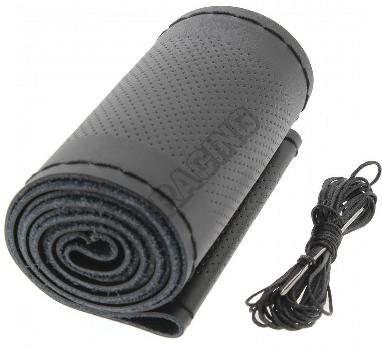 Kvalitní značkový kožený potah volantu. Balení obsahuje potah, režnou nit s jehlou pro utažení po nasazení na volant. Kvalitou se vyrovná originálnímu potahu na volantu. Potah si drží stálou strukturu, nenatahuje se, neklouže, nepotí se ruce a rozhodně samotný volant vypadá lépe než běžné provedení - je navíc efektně děrovaný . Aplikace je velice jednoduchá, kde potah se nasadí, kde krajní strany se utahují pomocí režné nitě, která se propletá švy naproti sobě viz obrazkový postup přímo na potahu.