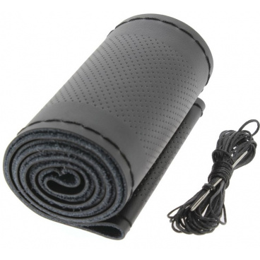 Potah na volant kožený černý/ černý šev (pro průměr 37-39 cm a tloušťku - měřeno jako obvod 9,4 - 1
