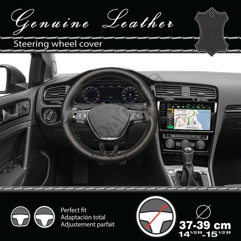Potah na volant kožený černý/ černý šev pro průměr 37-39 cm