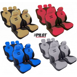 2 přední části, 2 zadní ( 3 + 3 zipy), 5 kryty opěrky hlavy. Polyester a pěnové polstrování