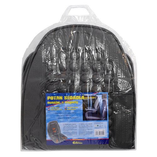 Masážní potah na sedadlo automobilu se zabudovanými magnety a s univerzálním systémem upevnění.