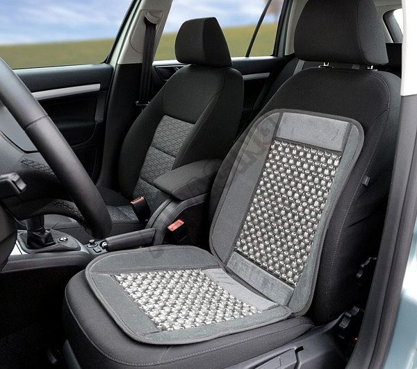 Potah s pevným lemem, výplň z dřevěných kuliček, které příjemně masírují tělo, podporují krevní oběh, pomáhají snižovat únavu i bolestivost zad a umožňují proudění vzduchu mezi sedadlem a zády řidiče.