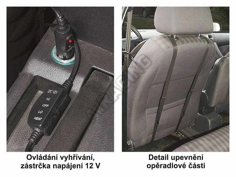 Vyhřívaný potah sedadla se zesílenou konstrukcí, velmi příjemný. Ideální pro příjemnou jízdu v chladných ročních obdobích. Zapojení do běžné zásuvky automobilového zapalovače 12V konektorem.
