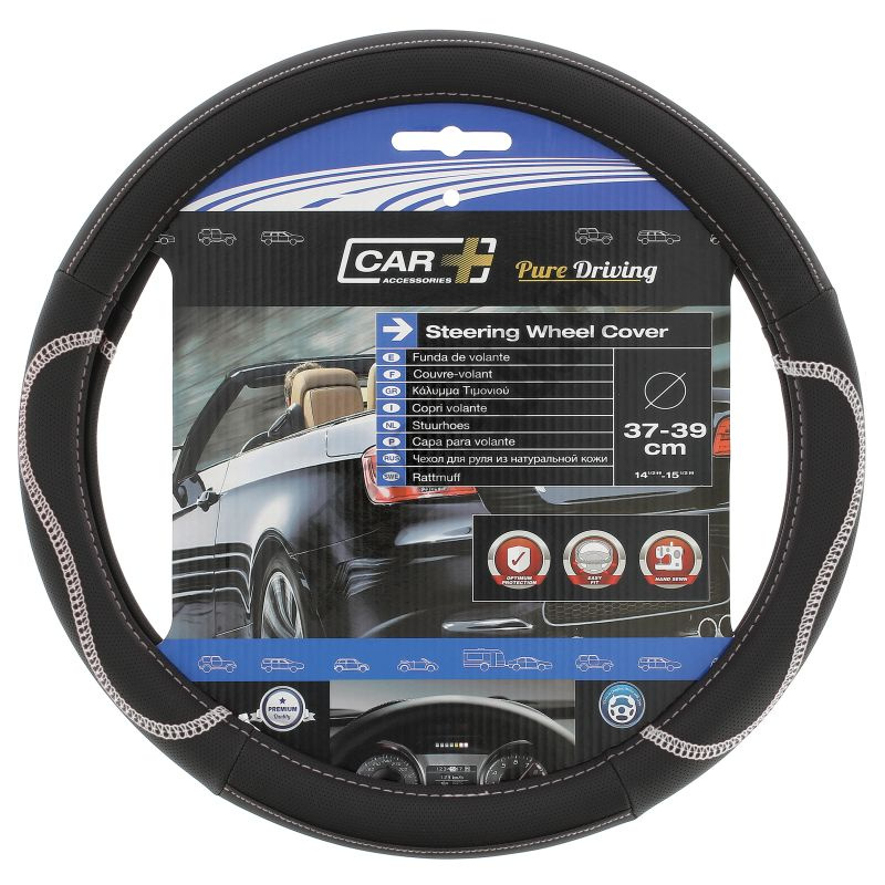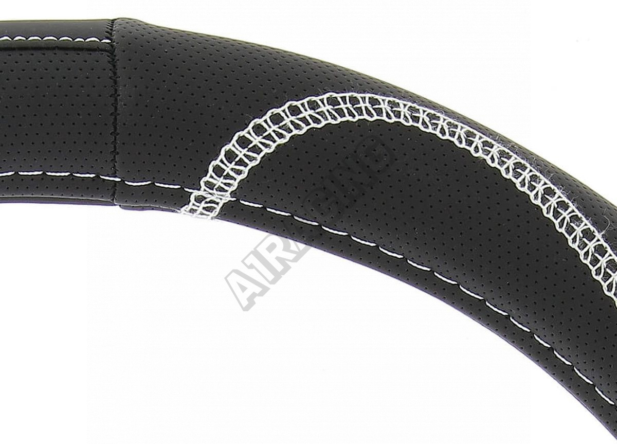 Kvalitní potah na volant s bílým prošitím. Po celém obvodu má děrování, které snižuje nesklouznutí rukou z věnce volantu. Určeno pro průměry volantů 37-39 cm.