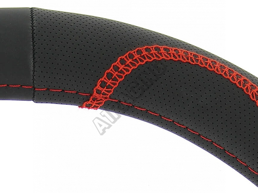Kvalitní potah na volant s červeným prošitím. Po celém obvodu má děrování, které snižuje nesklouznutí rukou z věnce volantu. Určeno pro průměry volantů 37-39 cm.