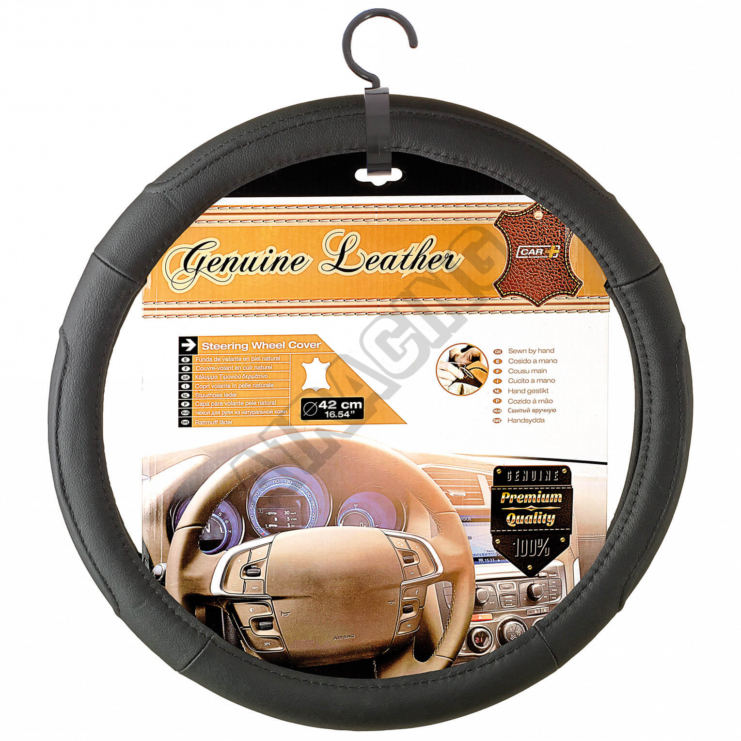 Potah volantu kožený černý 42 cm Velmi kvalitní prémiové kožené provedení. Tento potah je po obvodu