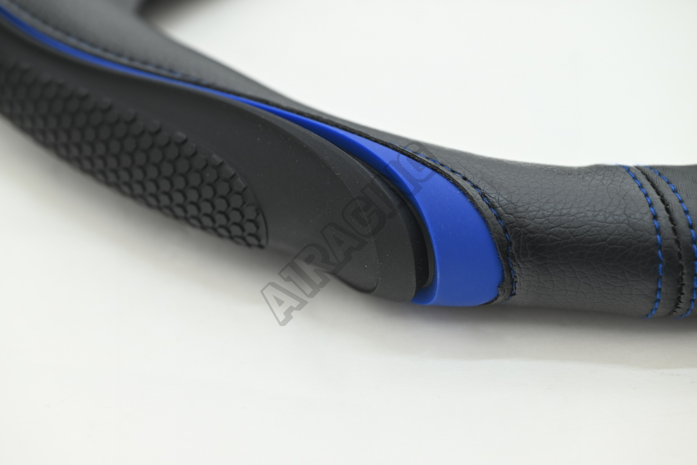 Potah volantu s robustním a zároveň pohodlným provedením úchopové části. Zpracování na černém podkla