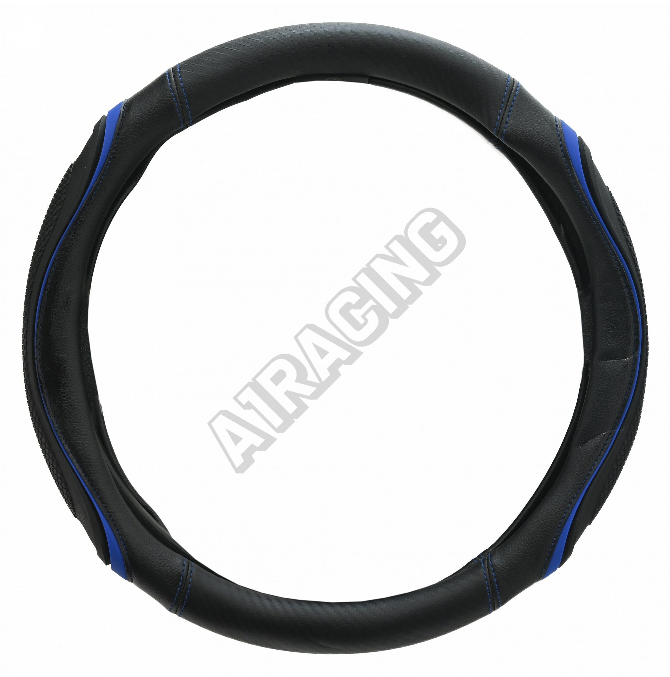 Zpracování na černém podkladu je dolpněné častmi se vzorem imitujícím karbon a prošíváním v modré barvě. Úchopová část je tvořena měkkou gumou v kombinaci černé a modré barvy.