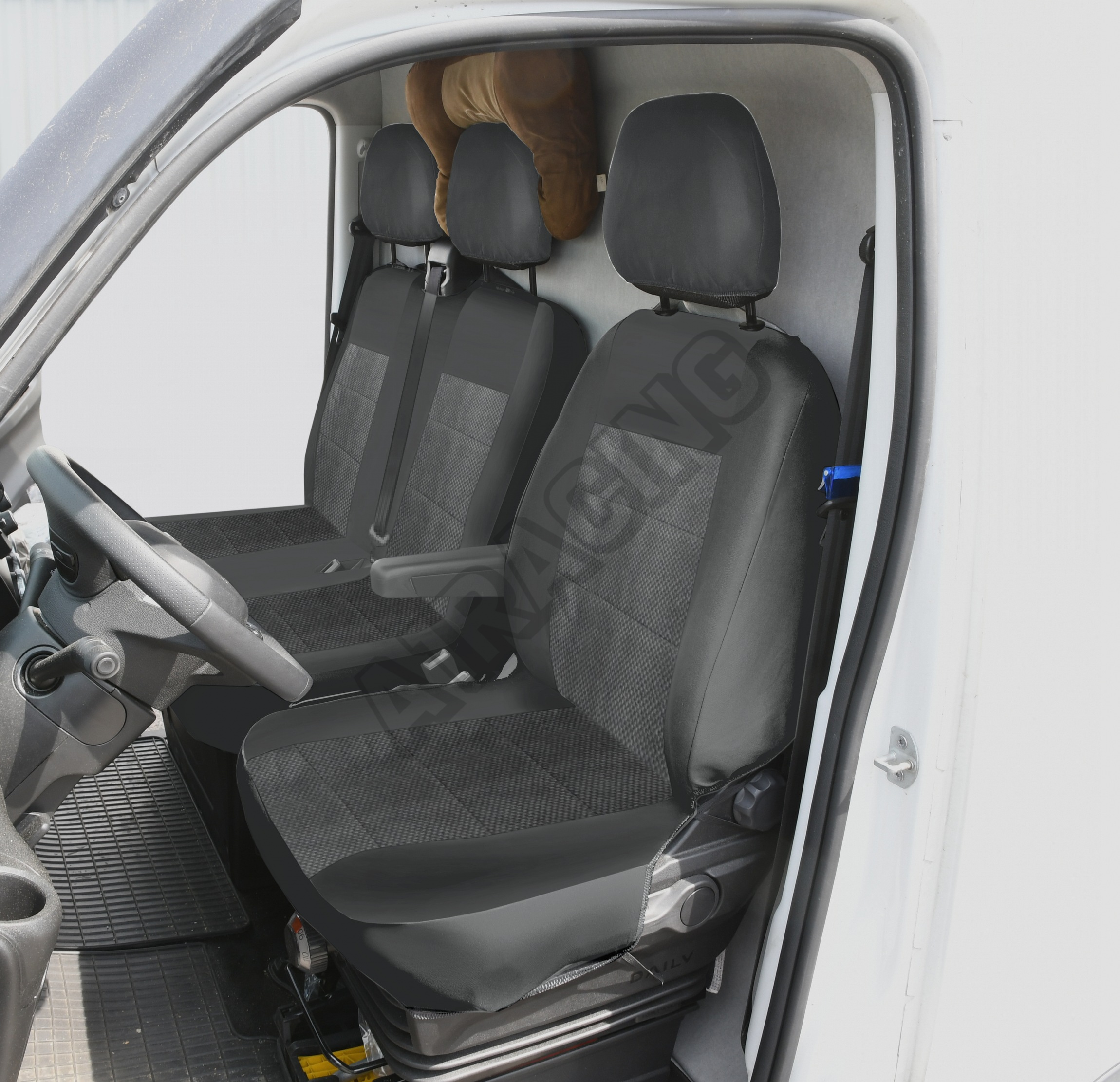 Potahy sedadel s univerzálním systémem upevnění, pro přední sedačky dodávek.