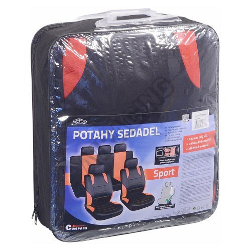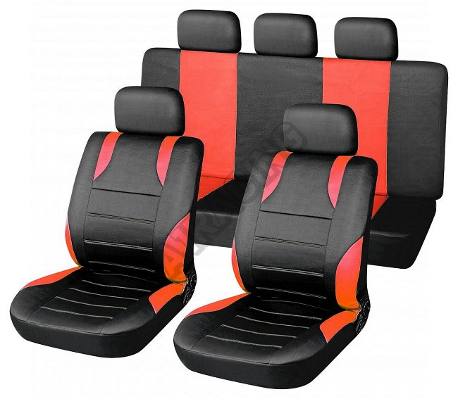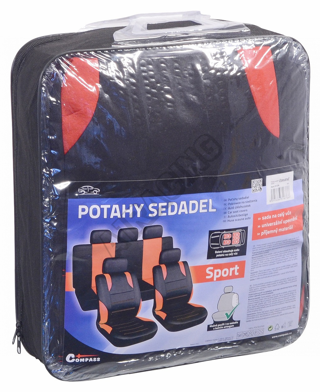 Potahy sedadel sada Sport červené airbag (2x přední sedadlo a zadní sedadla, 5x opěrka hlavy)