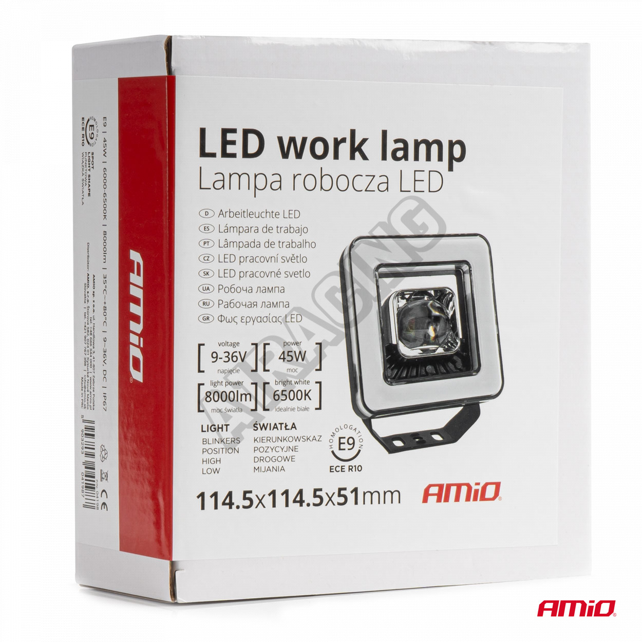 Poznejte naši lampu AWL57, kompaktní a výkonnou pracovní LED lampu o rozměrech 115x115 mm, která zajistí vynikající osvětlení i v nejnáročnějších pracovních podmínkách. S výkonem 45W a širokým rozsahem napětí od 9 do 36V, tato lampa nabízí až čtyři funkce: směrové světlo, obrysové světlo, potkávací světlo a dálkové světlo. To je vynikající řešení pro užitková vozidla, stavební stroje nebo terénní vozidla.