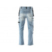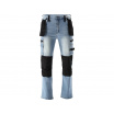 Montážní pracovní kalhoty s elastanem, vyrobené z obnošené a strečové džínoviny. Až sedmnáct kapes, včetně jedné se zapínáním na suchý zip, dvou se zapínáním na zip a dvou odnímatelných kapes pro montéra. Velké množství základních kapes a montážních kapes z odolného materiálu pomůže zorganizovat práci tesaře, pokrývače nebo klempíře.