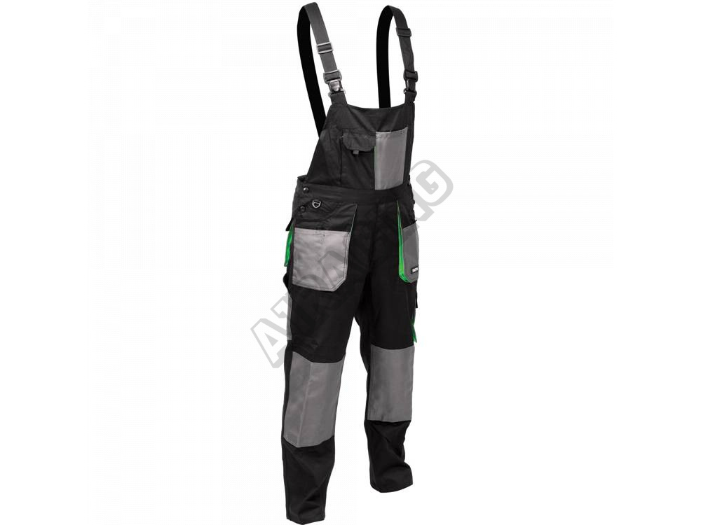 Pracovní kalhoty - montérky, s laclem a šlemi. Vyrobeno ze silného materiálu odolného proti roztržení.