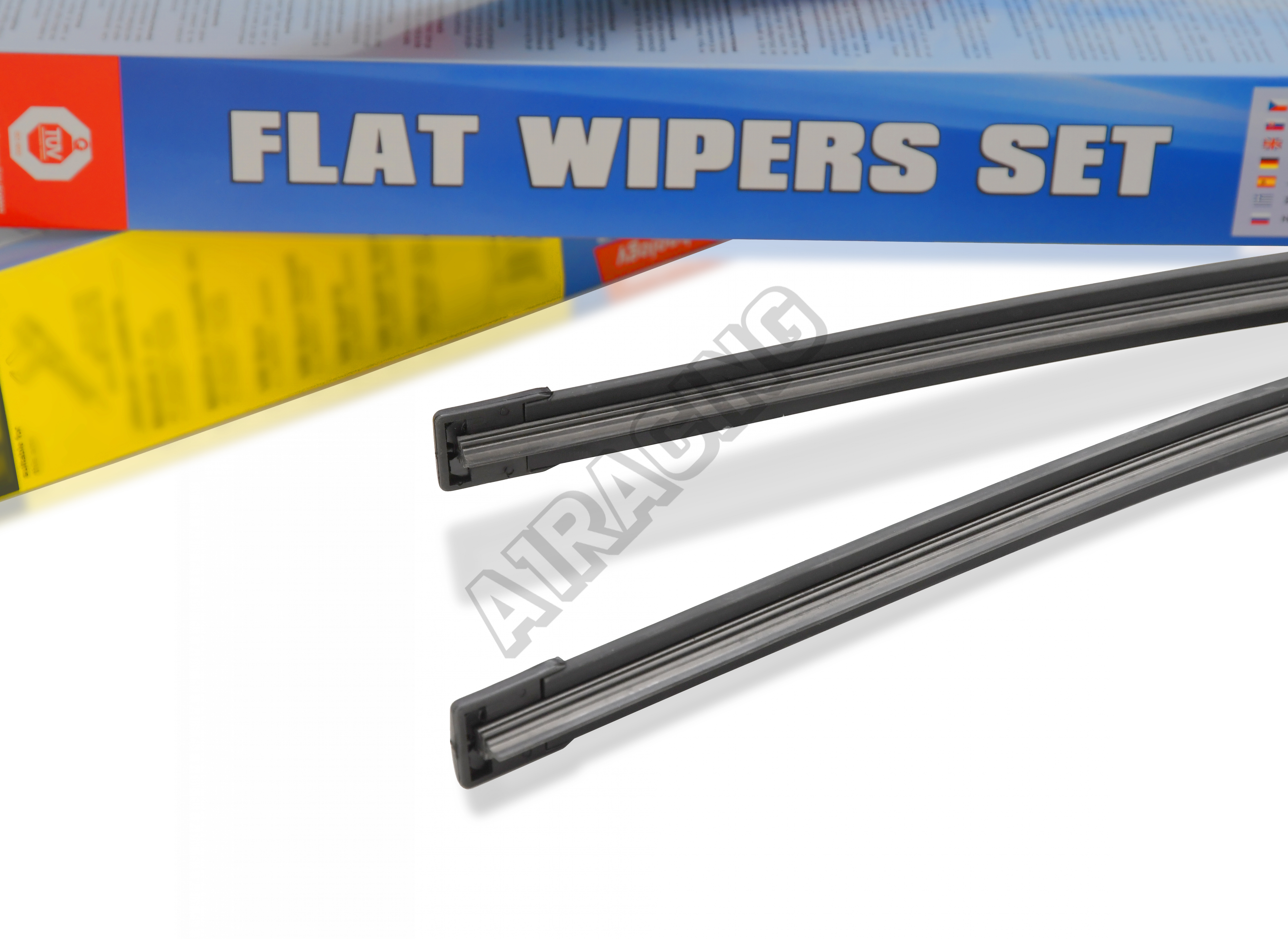 Sada dvou plochých stěračů FLAT (řidič + spolujezdec) se speciálním uchycením. Délky stěračů a systém uchycení na ramínko jsou přizpůsobeny vybraným vozům (viz tabulka použití).