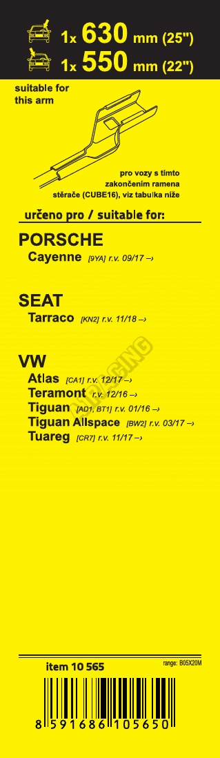Přední stěrače FLAT (630 + 550 mm) P. Cayenne, Seat Tarraco, VW Atlas, Taramont, Tiguan, Touareg