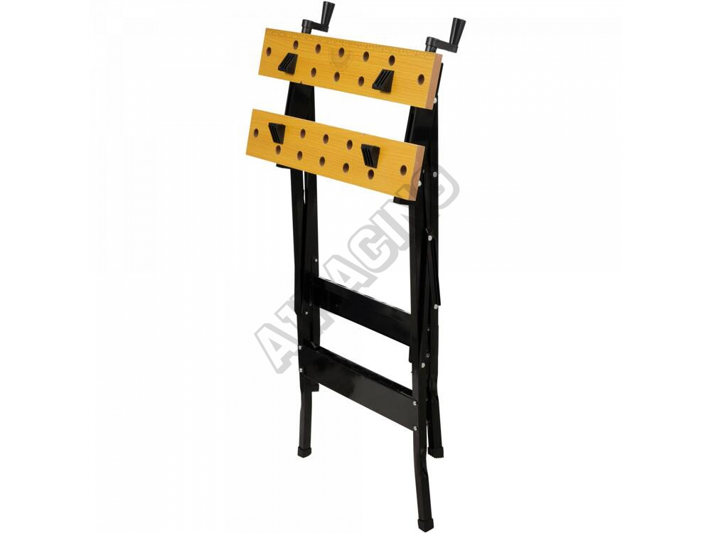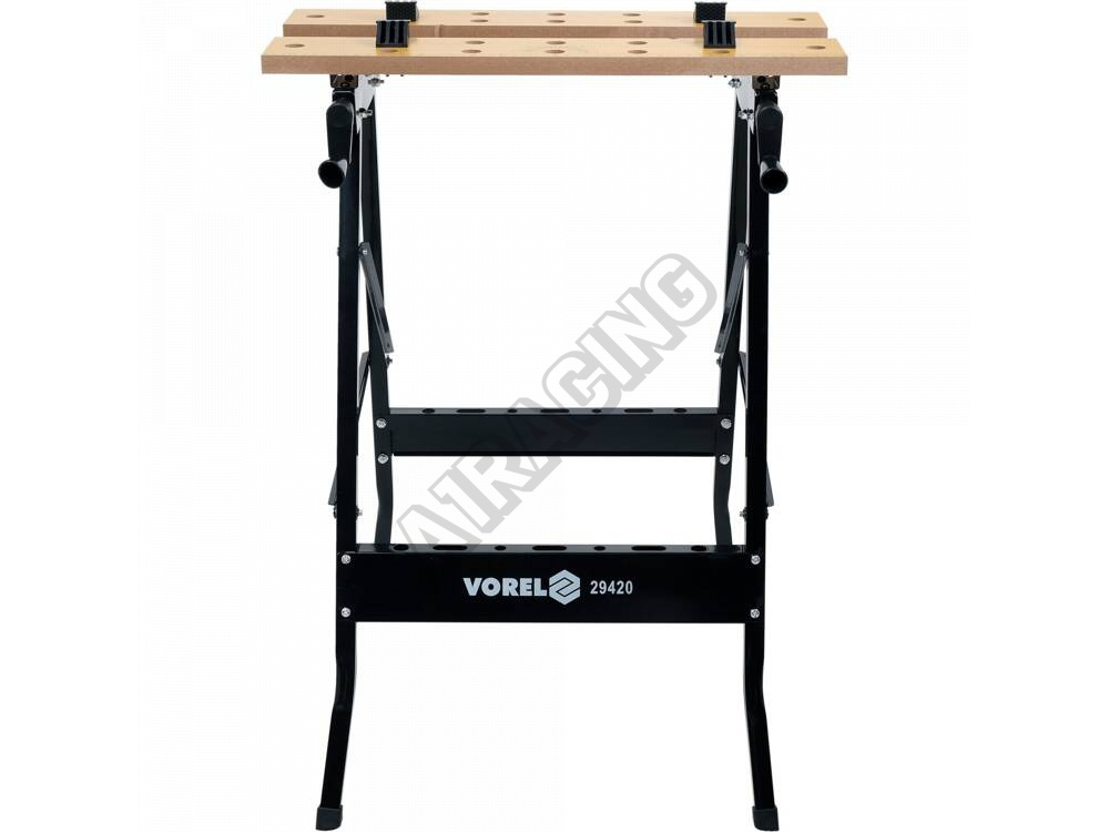 Skládací pracovní stůl se dvěma deskami z MDF pro upínání obrobků. Stůl je určen pro dílenské a mont