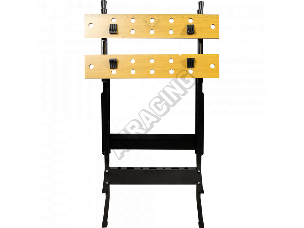 Skládací pracovní stůl se dvěma deskami z MDF pro upínání obrobků.