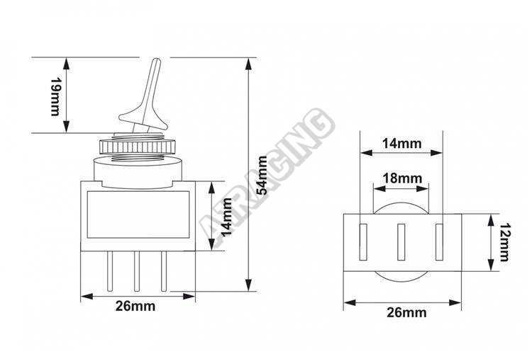 Univerzální jednopolohový přepínač typu Toggle. Vyrobeno z barevného plastu. Obsahuje LED podsvícení