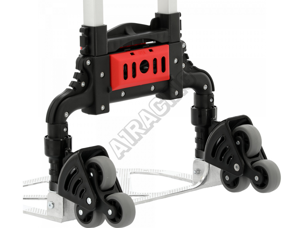 Lehký, praktický, skládací skladový vozík je vhodný pro přepravu předmětů po schodech. Ve složeném stavu zabírá málo místa, takže se snáze udržuje pořádek. Kolečka z TPR nepoškozují povrch, po kterém se kočárek pohybuje. Plošina vozíku je vyrobena z hliníku, díky čemuž je lehká a odolná.