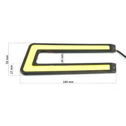 Rozměry denního svícení: délka 140mm, šířka 55mm, šířka "ramene" 17mm, hloubka: 5mm